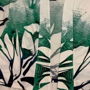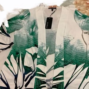 Small 3/4 length sleeve light weight chiffon jacket style.