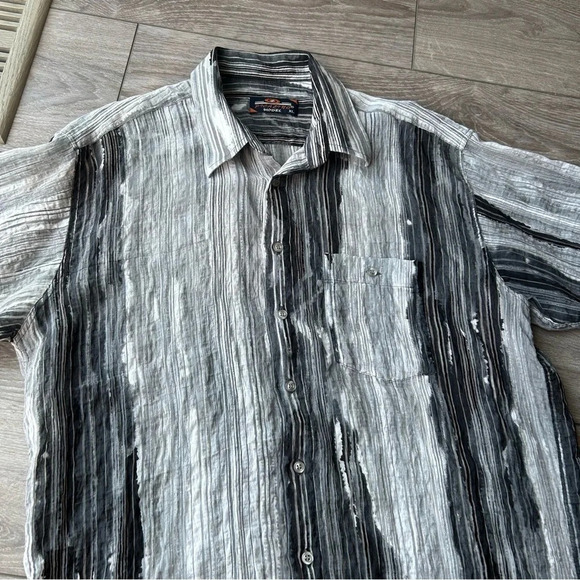 Picalino Silk Blend Semi Sheer Metallic Striped Button Down Shirt