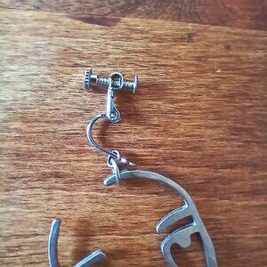 These are a pair of silver-tone 'Picasso' -inspired style face earrings. Clip on / screw- back fasteners for both pierced and non-pierced ears. Very funky!