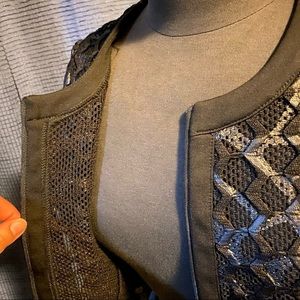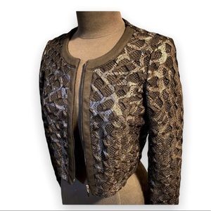 🇨🇦 Piccadilly. Black cropped jacket. Mesh and leather look. Collarless.