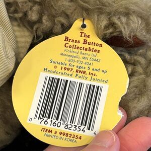Pickford Bears Brass Button Collectables Tanner Bear Plush 11” 1997 With Tags
