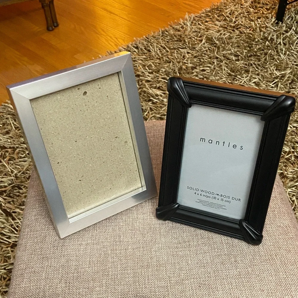 Enhance your home decor with this Solid Wood Picture Frame Set. Featuring a sleek black 4 x 6 frame and a silver 5 x 7 frame. These frames add a touch of elegance to any room. Perfect for showcasing your favorite photos.