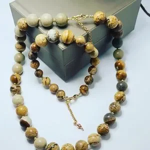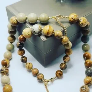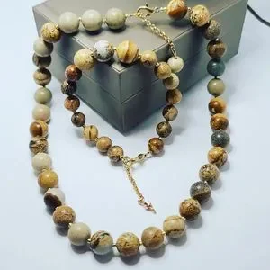 Picture Jasper beaded necklace and bracelet set 10 mm