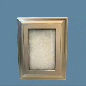 Picture frame, 4” by 6”, silver plastic frame with felt back