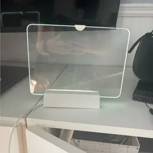 Clear light up picture frame. Light still works great, cord comes attached and connects through usb. Can put picture up to 19.5cm L x 14cm H