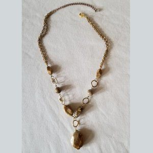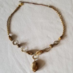 Picture jasper/landscape jasper gemstone necklace with gold accents, handmade