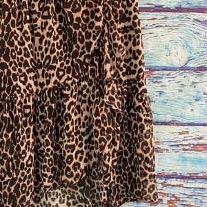 Pieces Animal Print Ruffled Midi Skirt