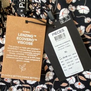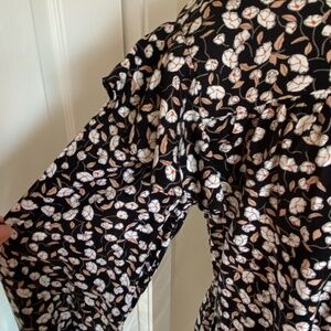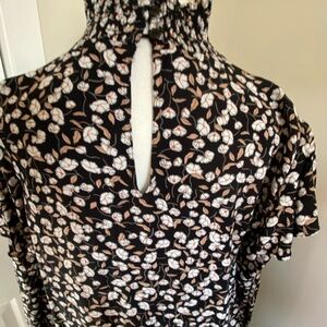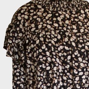 Pieces Black White Floral Flutter Long Sleeve Smocked Mock Neck Dress-Sz-XL