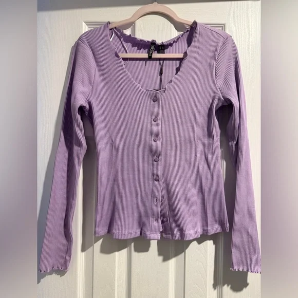 Brand new with tag Pieces lavender ribbed cardigan with lettuce trim details on neck line and sleeves Size M