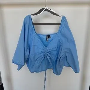 Pieces Light Blue Ruched Blouse Size M