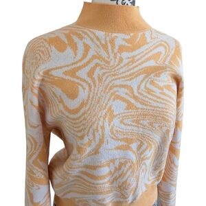 Pieces Mila Long-Sleeve Highneck Knit Sweater Flax Orange White Women's Medium