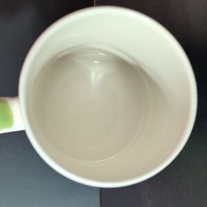 Pier 1 hand-painted stoneware white/green coffee mug.