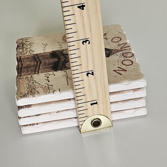 Pier 1 Imports Coasters 4 by 4 Inches Set of 4 Tile Cork Cities Vintage Open Box