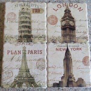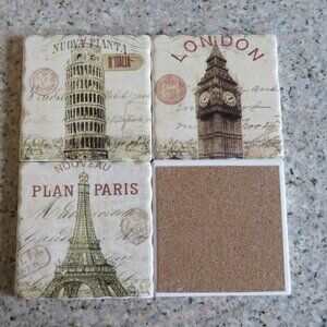 Pier 1 Imports Ceramic Coasters, Set of 4, featuring London,