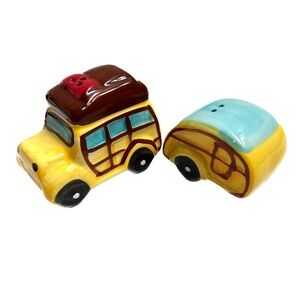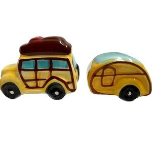 Pier 1 Woody Car And Camper Trailer Salt And Pepper Shakers 2 Pieces Yellow Teal