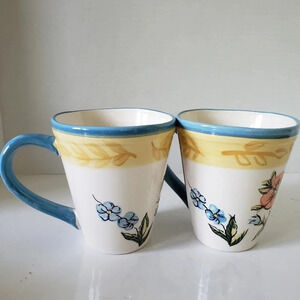 Pier one Imports set of 2 Provance large ceramic floral multi-colored coffee mugs.