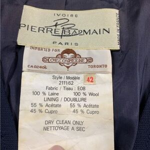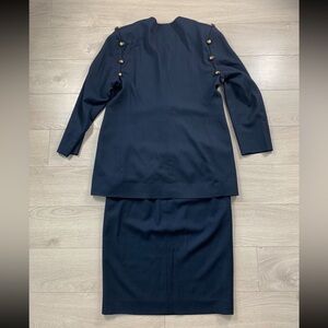Pierre Balmain Vintage Navy Blue Wool Blazer Skirt Set