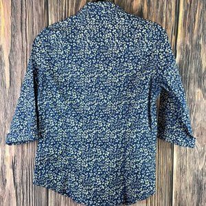💯 cotton buttoned down 3/4 length blouse. Approximate measurements 17” bust x 22” top of shoulder to hemp 6” width sleeve. There is not a lot of stretch in this material. In great pre-owned condition. Enjoy 😊!
