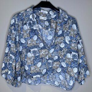 Pierre Cardin (Vintage) - Hawaiian Tropical Collared Crop Top - size Medium