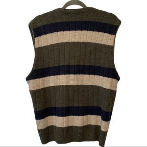 Pierre Cardin vintage button front unisex v neck sweater vest olive green/navy/beige size XL EUC