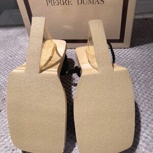Pierre Dumas high wedge sandal with unique lucite wedge heel. Never worn!!