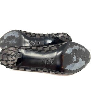 Pierre Hardy Black Silver Suede Geometric Print Open Toe Pumps Size 10