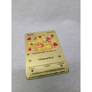 Pikachu I Choose You Love Heart Valentine Gold Metal Card- Brand new