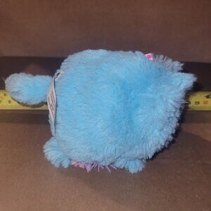 The Ball is about 4 inches across. Super cute fluffy cat!