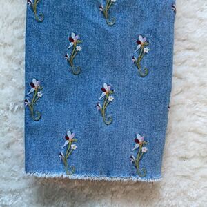 Pilcro And The Letterpress Size 25 Straight Leg Cropped Jeans Flowers On Bottom