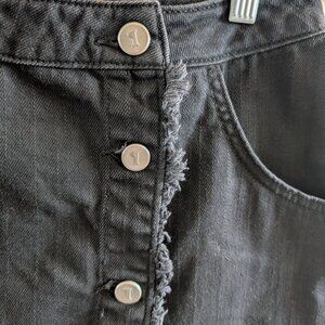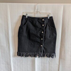 Pilcro Anthropologie Black Denim Button-Down Fray Hem Skirt Size 8