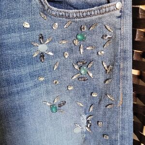 Experience timeless style with anthropologys Pilcro's blue straight leg jeans, crafted from premium denim and a comfortable fit. These jeans feature a classic straight leg cut, sewn in jems perfect for everyday wear, with subtle fading and whiskering for a casual, lived-in look. Embellished denim is big for fall winter 2025