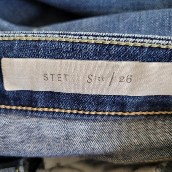 Condition: Good pre-owned condition with minimal normal wear. The "STET" tag inside the jeans is not attached any longer on each end, but this will not interfere with the enjoyment and wearing of the jeans. No holes/stains noted.