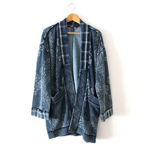Pilcro Quilted Kimono Jacket / S/M / Blue Motif Anthropologie Long Cardigan Wrap