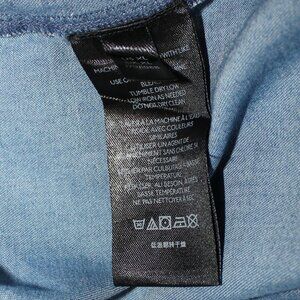 63% cotton, 37% lyocell Machine wash Preowned: minor mark on front Button up shirt Collared Patchwork detail Front flap pockets
