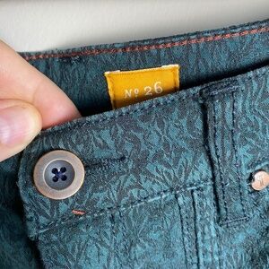 Pilcro and The Letterpress Green Forest Floral Stretch Pant Size 26 Zipper Hems
