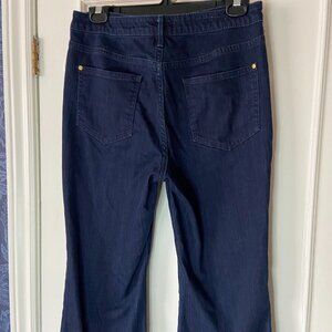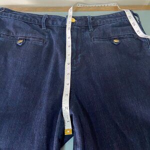 Premium denim dark wash flare blue jeans. Pilcro and the letterpress by Anthropologie.