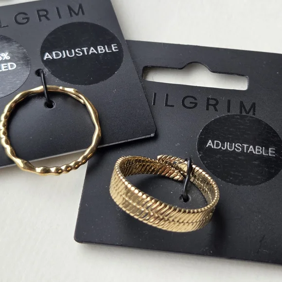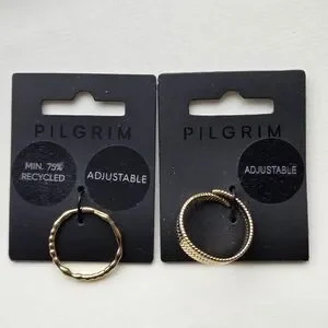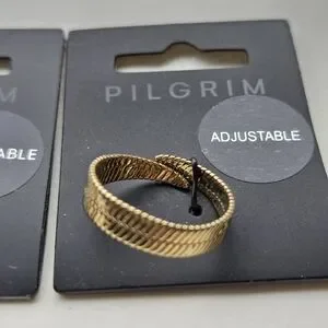 Elegant gold rings by Pilgrim. Features unique textures. Adjustable fit.