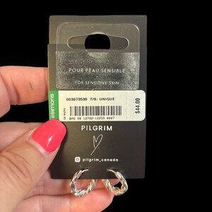Pilgrim Danemark 1983 - Sparkly Twisted Hoops - Silver Plated - 15mm drop