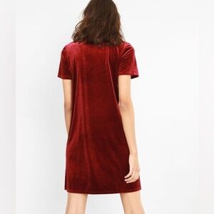 Very sweet burgundy velvet shift dress from French brand pimkie. High smocked collar, shirt sleeves.