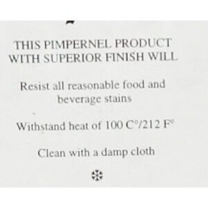 They measure 4" x 4" and resists all reasonable food and beverage stains and can be clean with a moist cloth.