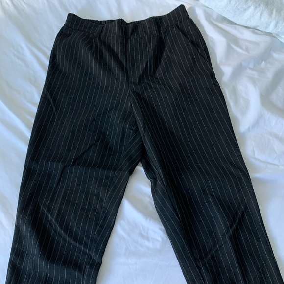 Black, pin striped and cropped dress pants. Great condition!