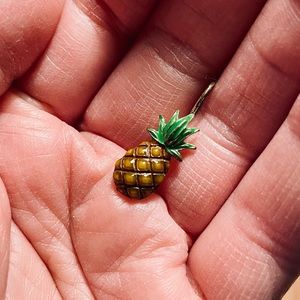 An adorable little pair of pineapple earrings in great used condition. They are about 3/4 of an inch in size and have gold accents.