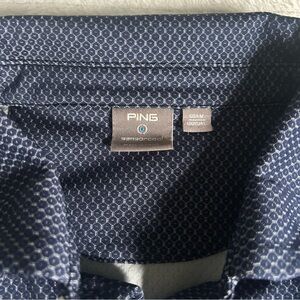 Ping Mens Spike Short Sleeve Shirt Medium Dark Blue Polo Collared Golf Shirt