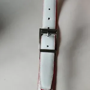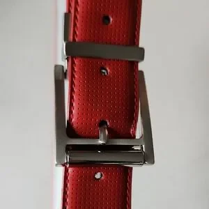 Stylish and durable red and whiteleather belt. Perfect for any occasion.