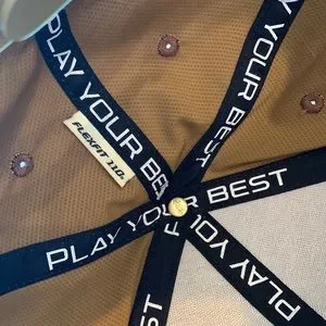 New with tags. Brown and grey with blue, white and red branding. Flex fit tech 110.