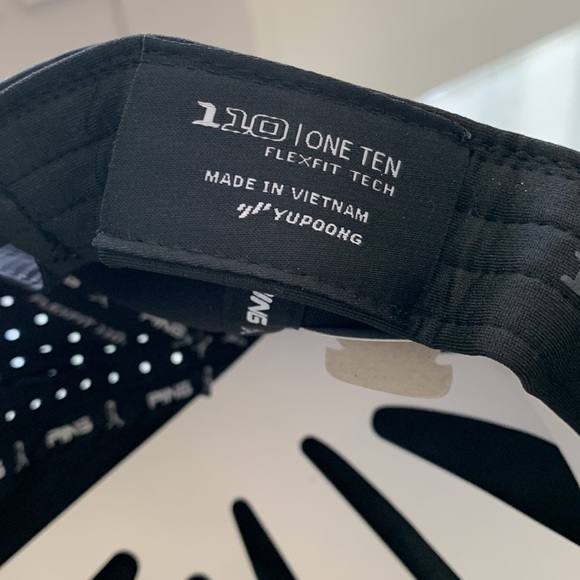 New with tags. Ping cap. Venting on back half. Flexfit. Black with white and grey branding. Embroidered on front and back. Unisex.