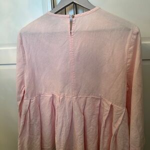 Linen blouse with ruffle, light pink natural linen Size small Made in EU