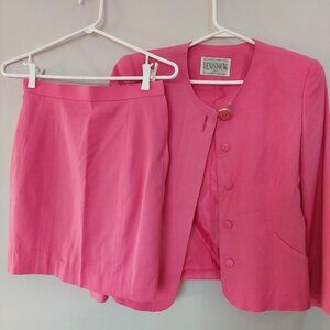 Vintage Pink Wool Skirt and Blazer Set