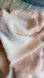 Soft to the touch, pale pink with a subtle sheen, loose fitting short sleeve top finished with side, slits double folded him on the sleeves and bottom edge, neck line, detail with top stitching, button and loop closure at the back. Hand wash lay flat to dry.