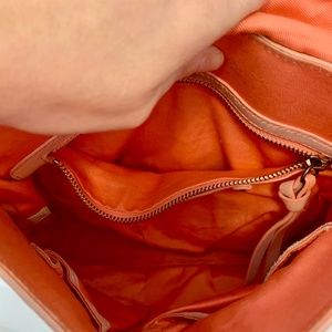 Pink Anthropologie purse, GUC. While this purse may show some wear (see photos), it still has lots of life and is a great little travel purse. It's not too big and not too small. It's a soft nubuck leather, with tons of pockets inside. From a smoke free, poodle friendly home.